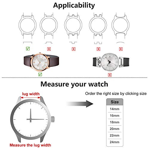 【16mm horlogeband】Compatibel met elk traditioneel of slim horloge dat 16mm veerstaven gebruikt. Snelspanveren zijn bij de levering inbegrepen en in de armband geïntegreerd. Het is daarom belangrijk dat de lugbreedte van het horloge overeenkomt met de bandbreedte van 16mm. Meet voor het bestellen de breedte waar de armband de horlogekast raakt.
