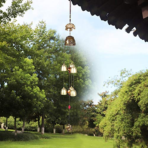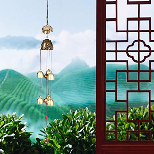 KSTE Olifant Ornament, Wind Chimes – Vintage Bladeren Olifant Gunstig Opknoping Ornament, Succes Feng Shui Bronzen Kleur…